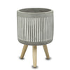 AAA9656GW 8 1/4"Oah Cement Vertical Rib White Wash Round Pot w/Wood Legs; Pot: 5 1/2"D - Grey/White Wash Log in for pricing